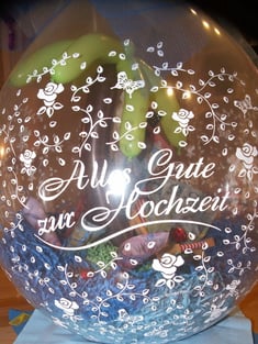 Dieser durchsichtige 43 cm ø Stuffballon mit diversen Aufdrücken wie für Hochzeit, Taufe, Geburtstag, etc. eignet sich für kleine Geschenke oder